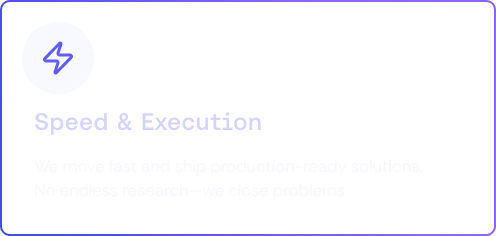 We enter the arena when internal teams, generalist consultants, or off-the-shelf vendors have reached their limit. We ship production-ready AI systems that scale, and we do it fast.